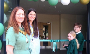 Pupils, staff and guests celebrate the official opening of a brand-new building.